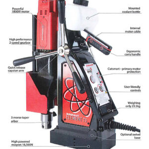 | Max Hole Cutting Capacity | 75 x 75mm Deep – 26mm with MT Drill | |||